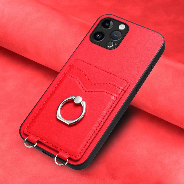 Estuche para Teléfono iPhone 12 Pro R20 con Soporte para Tarjeta y Anillo (Rojo)
