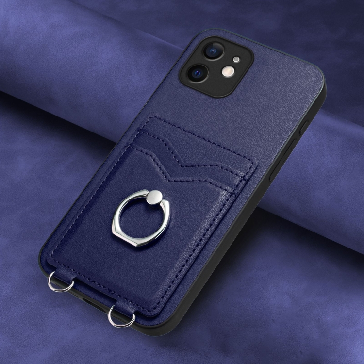 Estuche para Teléfono iPhone 12 R20 con Soporte para Tarjeta y Anillo (Azul)