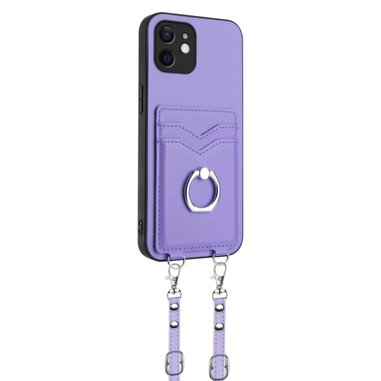 Funda para Teléfono iPhone 12 R20 Soporte para Tarjeta con Anillo y Cuerda Cruzada (Púrpura)