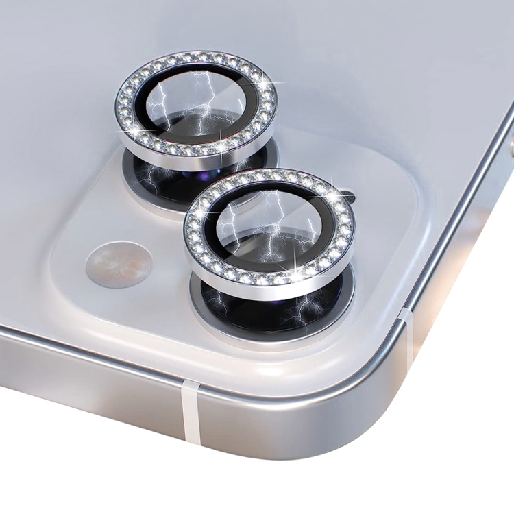 Lente de Cámara Northjo para iPhone 13/13 Mini Película de Anillo de Diamantes de Imitación Metal Vidrio Templado (Plata)