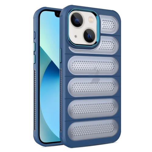 Funda para iPhone 13 Caja de Teléfono Transpirable de Malla Translúcida con Armadura de Enfriamiento (Azul)