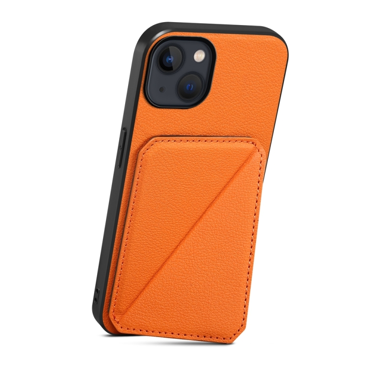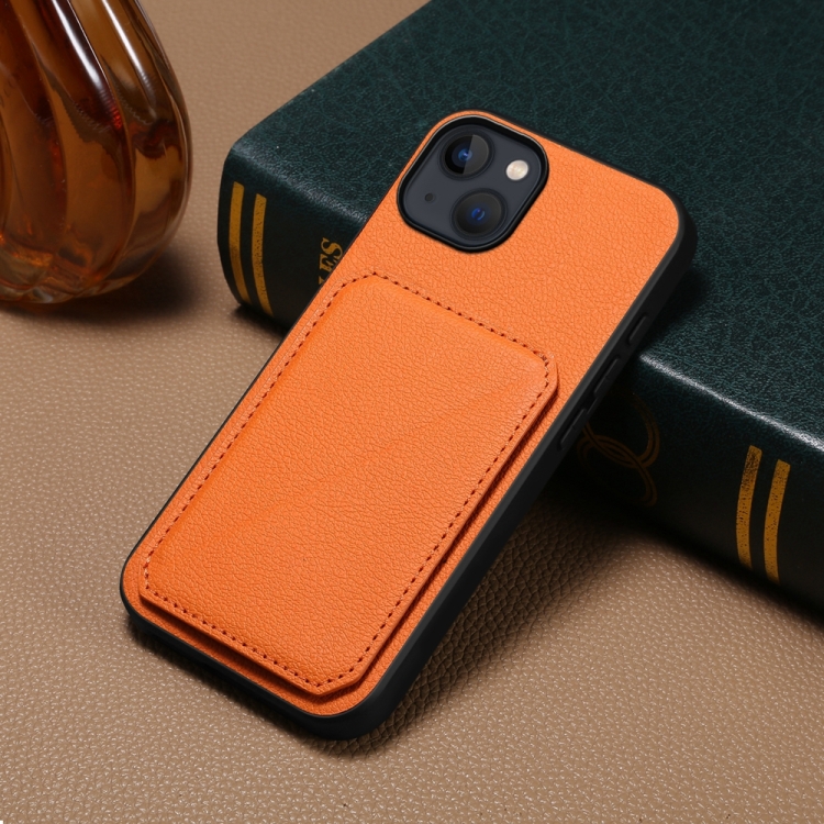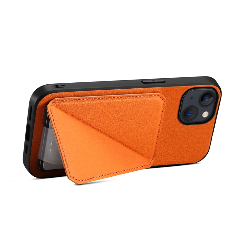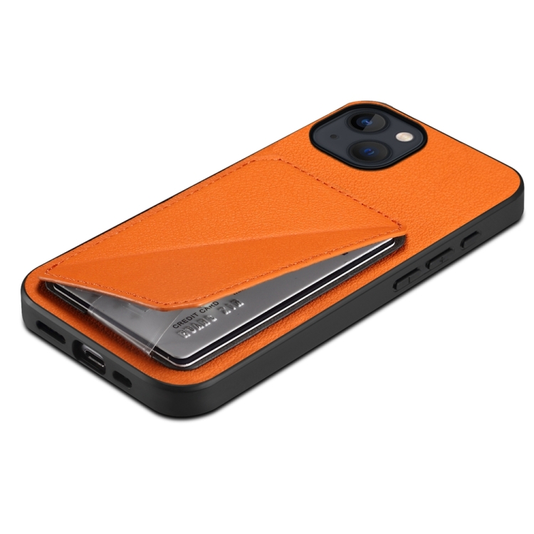 Funda para Teléfono iPhone 13 D04 Ranura Doble Tarjeta Textura Becerro (Naranja)