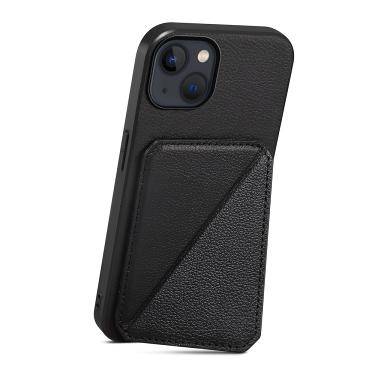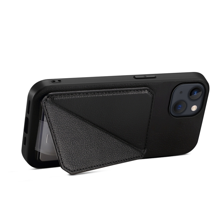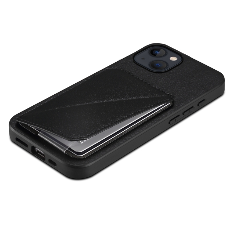 Funda para Teléfono iPhone 13 D04 Ranura para Tarjeta Dual Textura de Becerro (Negro)