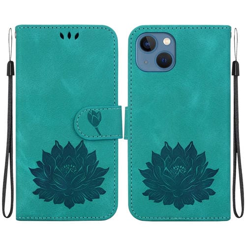 Funda de Cuero para iPhone 13 con Relieve de Loto (Verde)