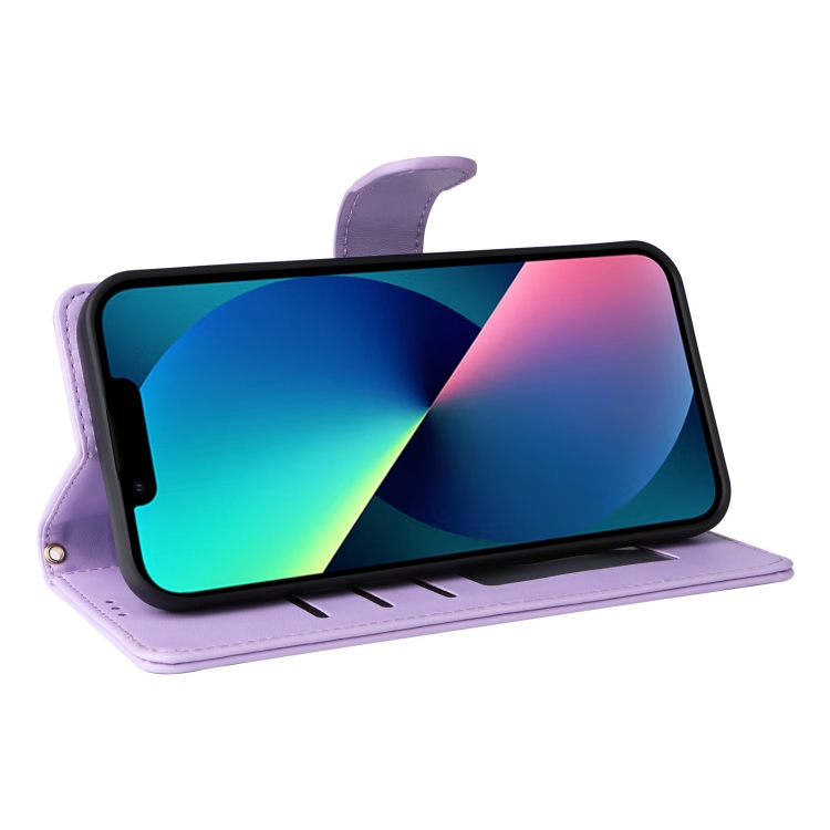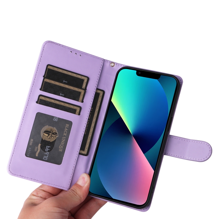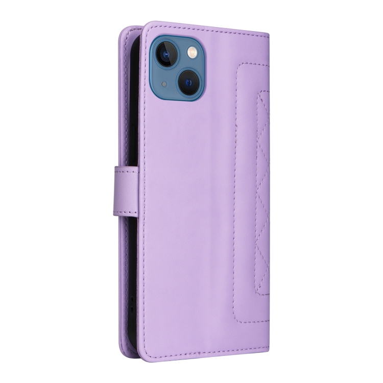 Funda de Teléfono para iPhone 13 con Tapa de Cuero Diamond Lattice (Púrpura Claro)