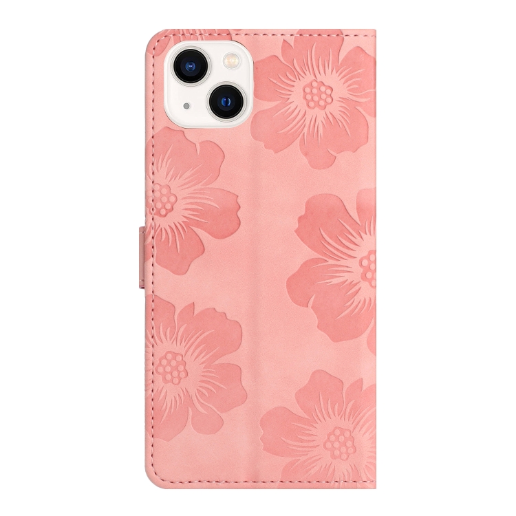 Funda de Teléfono iPhone 13 Cuero Estampado Flores en Relieve (Rosa)