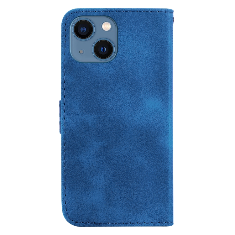 Funda de Teléfono iPhone 13 Cuero En Relieve En Forma de 7 (Azul)