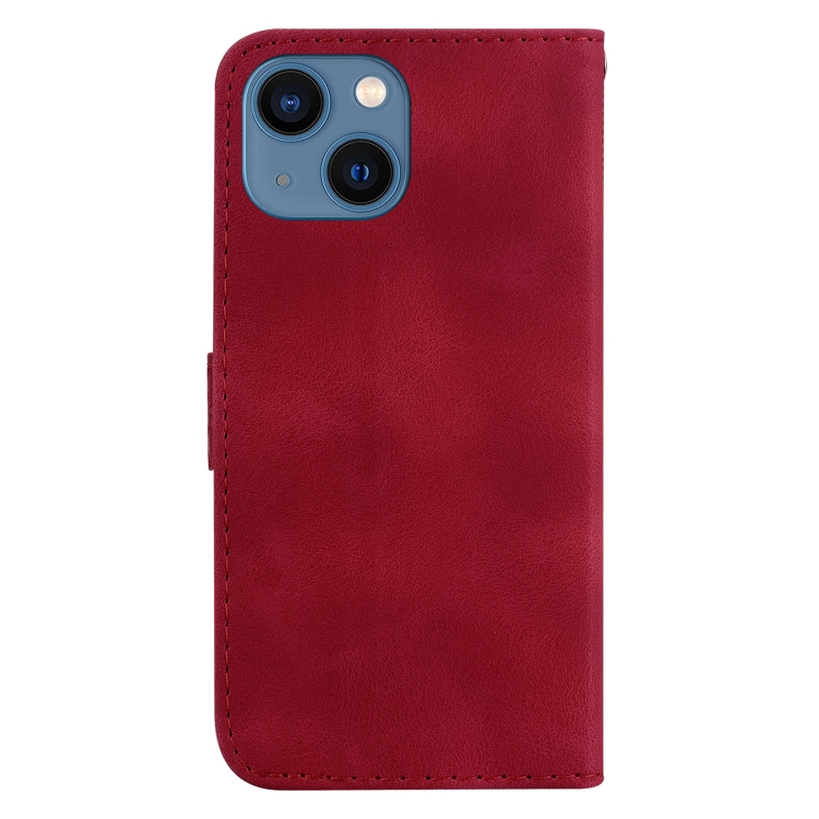 Funda de Teléfono iPhone 13 Cuero En Relieve En Forma de 7 (Rojo)