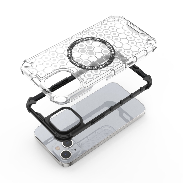 Funda para Teléfono iPhone 13 a Prueba de Golpes con Anillo Magnético en Forma de Panal (Blanco)