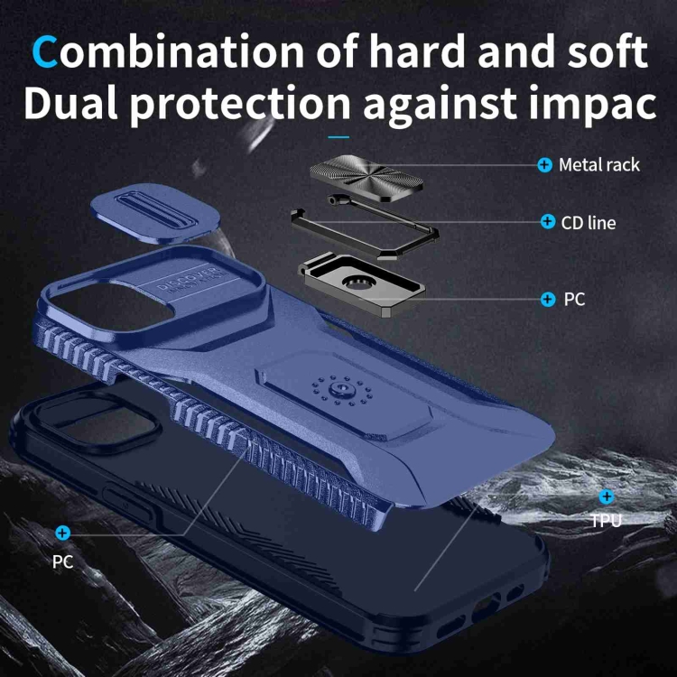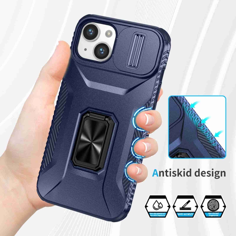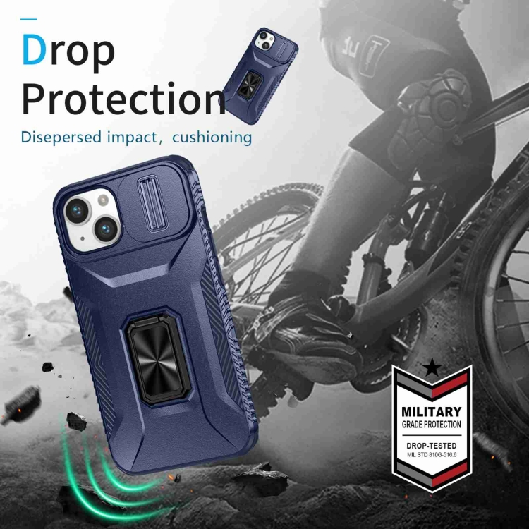 Funda para Teléfono iPhone 13 con Soporte Deslizante para Levas (Azul)
