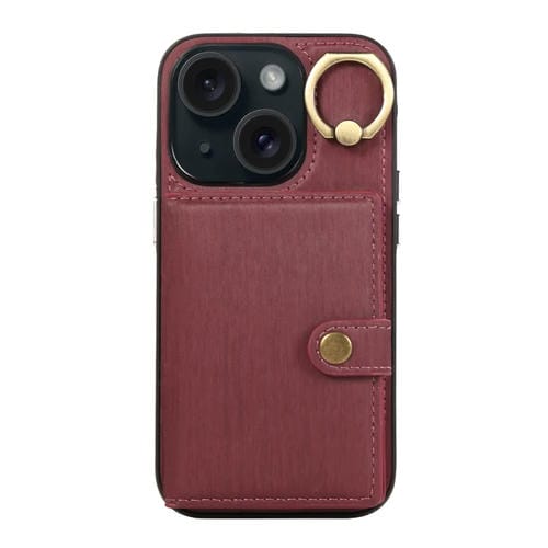 Funda para teléfono iPhone 13 con soporte para anillo y billetera con textura cepillada (Rojo Vino)