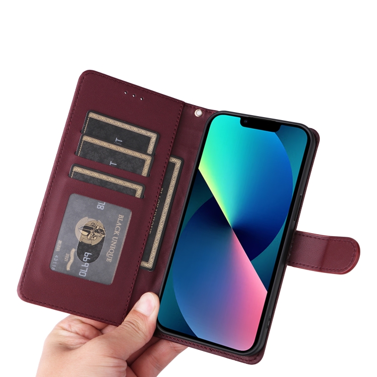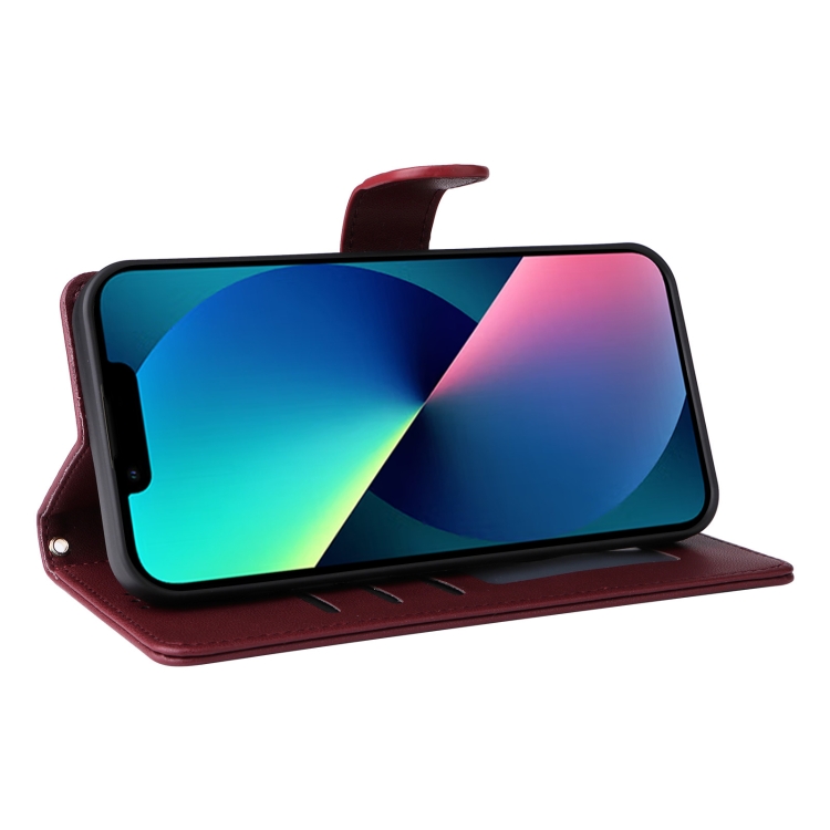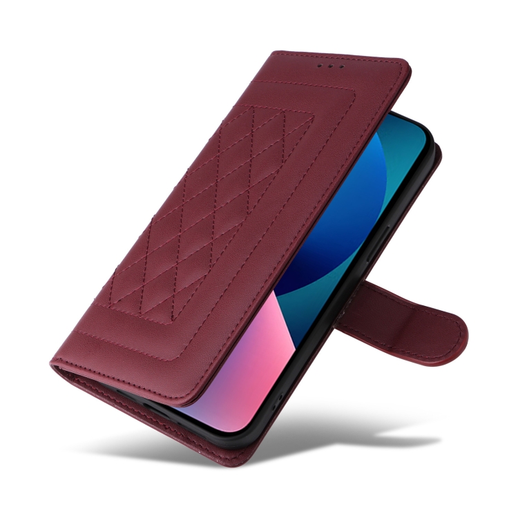 Funda para Teléfono iPhone 13 Cuero Diamond Lattice con Tapa (Rojo Vino)