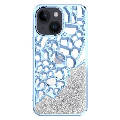 Funda para Teléfono TPU Galvanizada iPhone 13 Disipación de Calor Hueca Estilo Diamante (Azul)