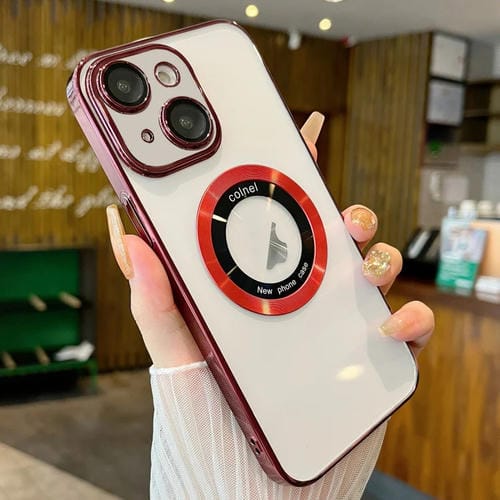 Funda para teléfono iPhone 13 Magsafe PC galvanizada Transparente (Rojo Vino)
