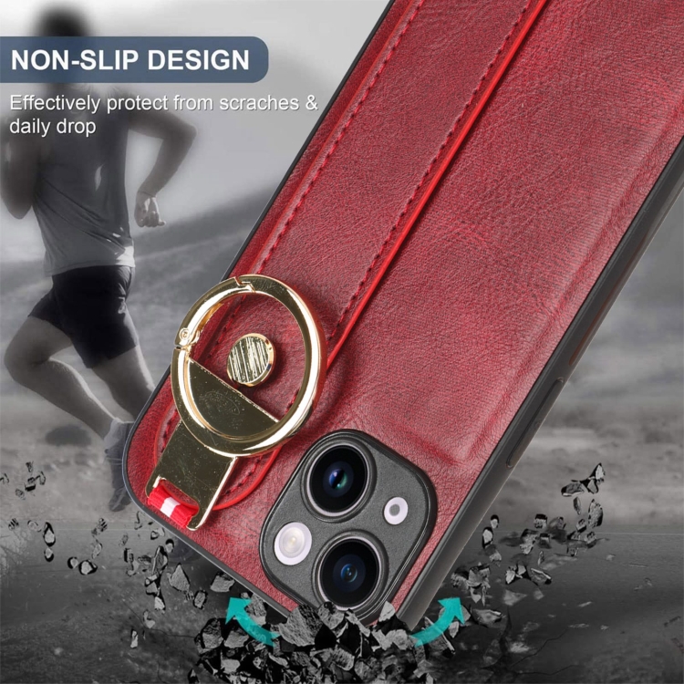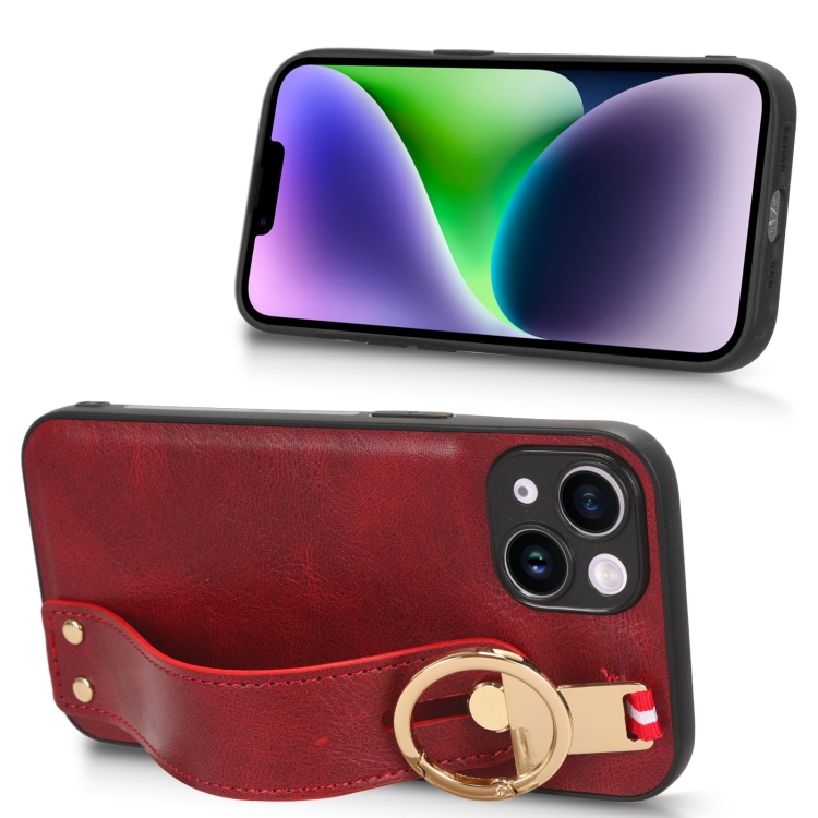 Funda Trasera de Cuero para iPhone 13 con Muñequera (Rojo)