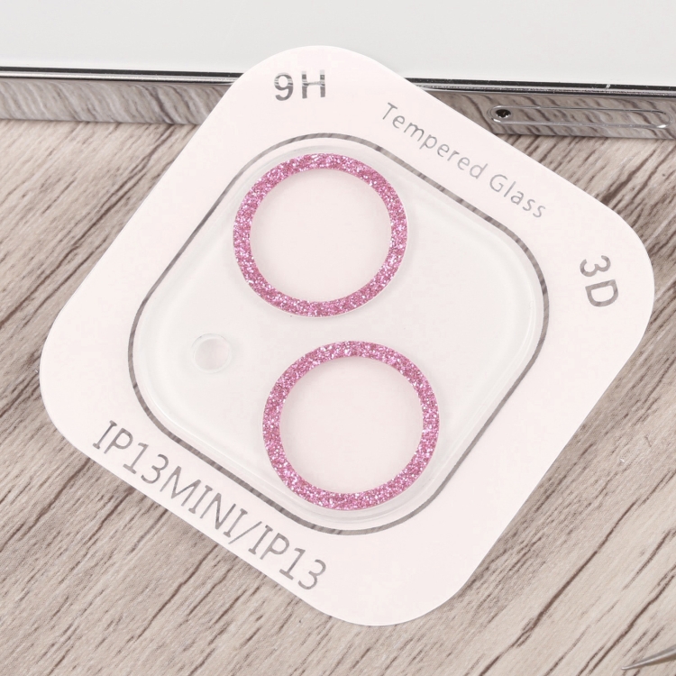 Película de Lente de Cámara de Vidrio Templado para iPhone 13 Glitter Ring (Rosa)