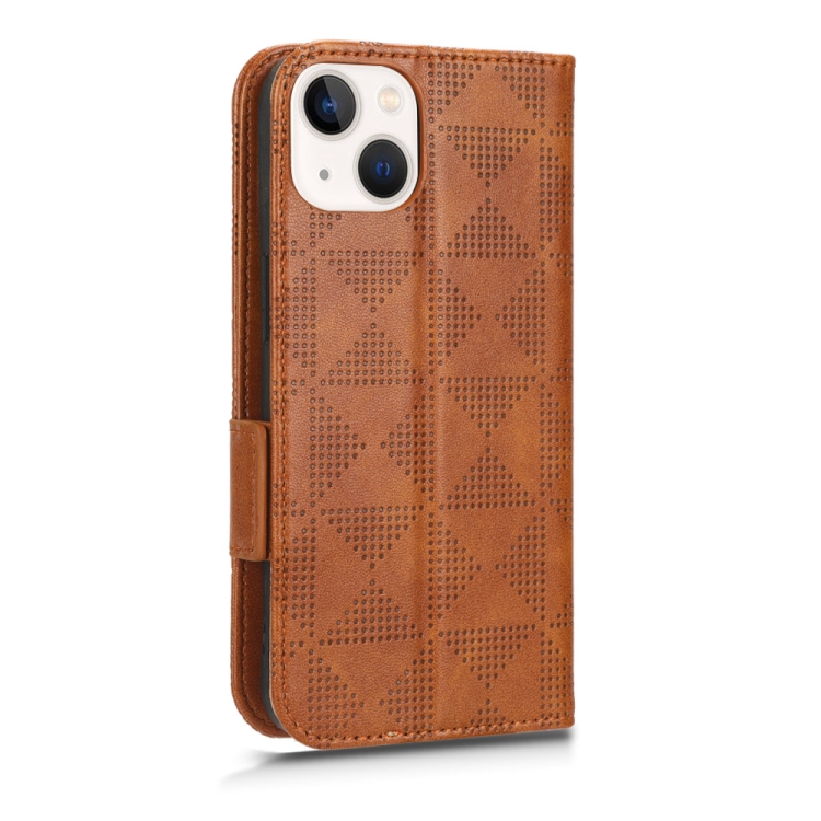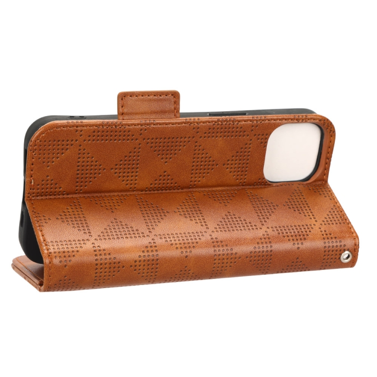 Caja de Teléfono iPhone 13 Mini Cuero Triángulo Simétrico (Marrón)