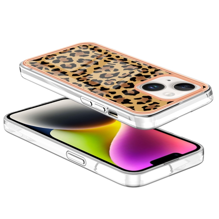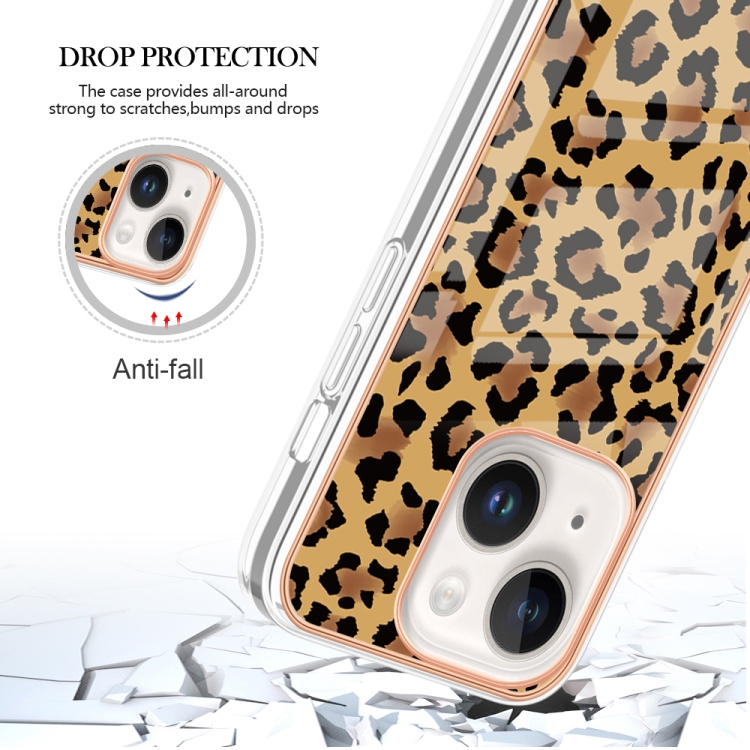 Caja de Teléfono para iPhone 13 Mini Imd Doble Cara Mármol Galvanizado (Estampado de Leopardo)