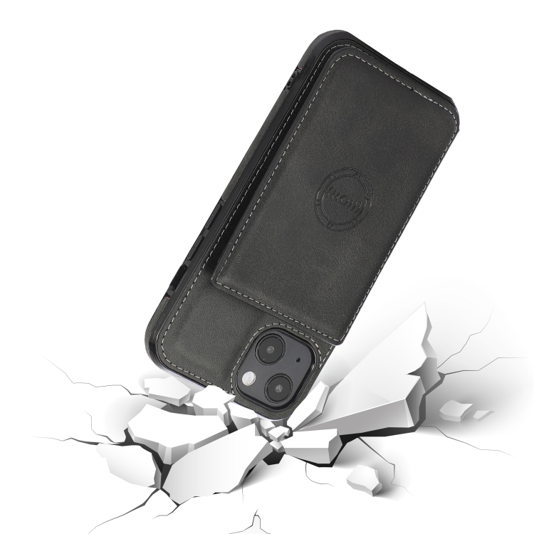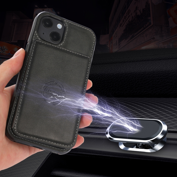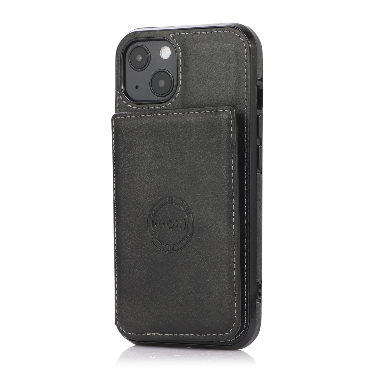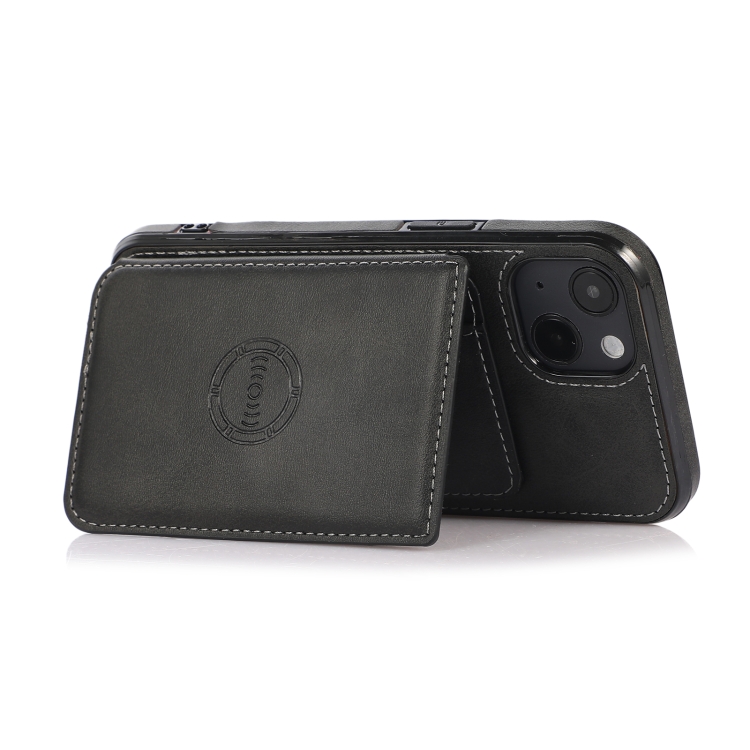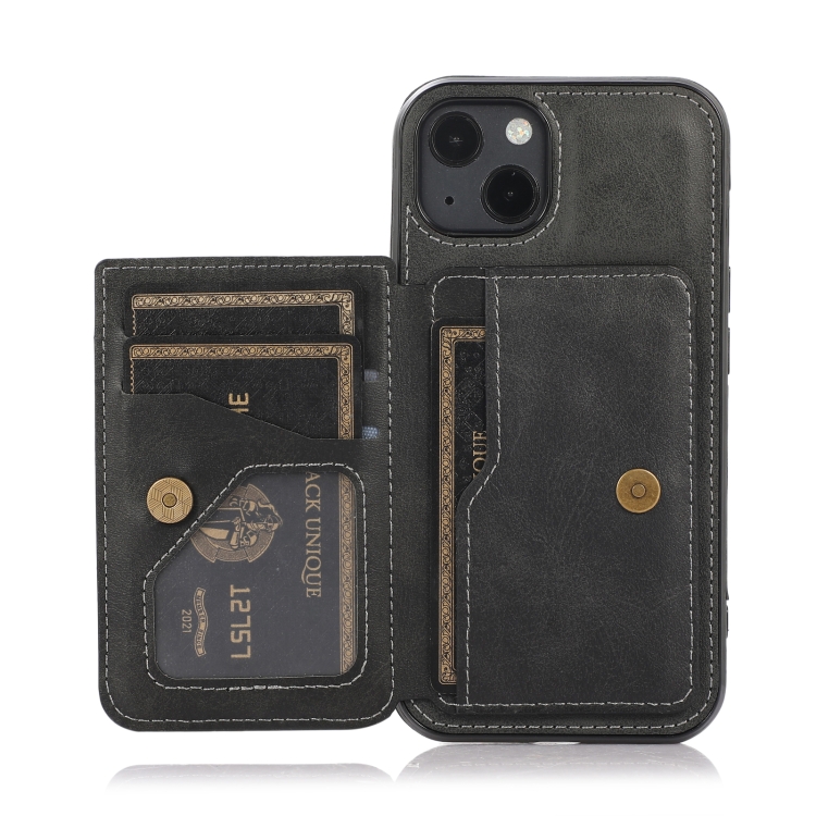 Funda para iPhone 13 Mini Calf Texture Bolsa de Tarjeta Magnética PU a Prueba de Golpes con Soporte (Negro)