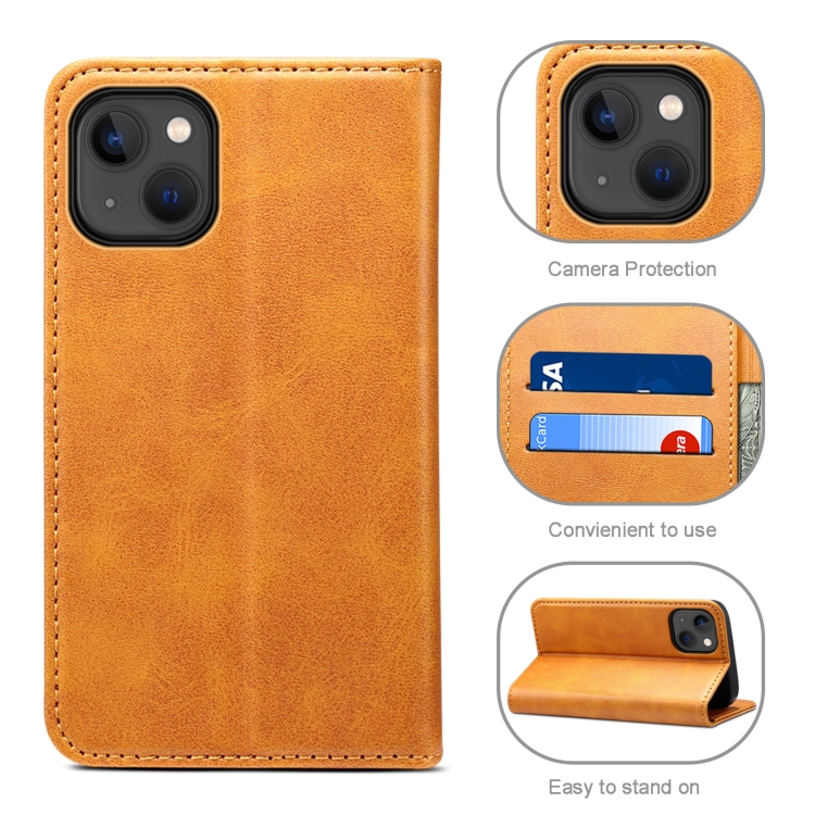 Funda de Cuero Para iPhone 13 Mini Calf Texture con Tapa Horizontal Soporte y Ranuras para Tarjetas y Billetera (Caqui)