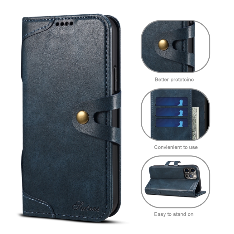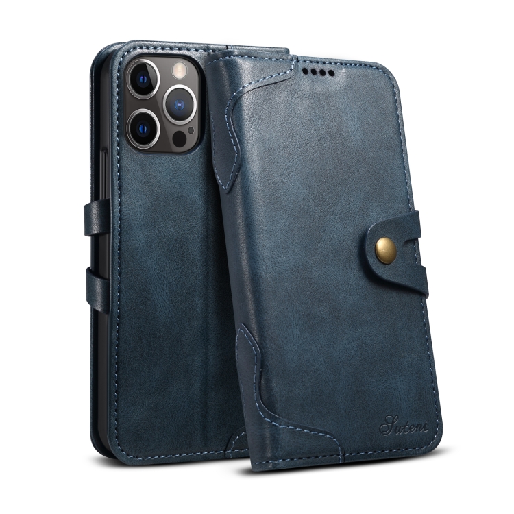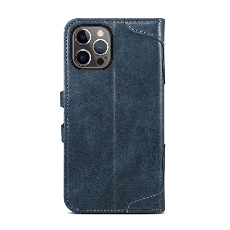 Funda de Cuero iPhone 13 Mini Calf Texture con Hebilla, Tapa Horizontal, Soporte y Ranuras para Tarjetas (Azul)