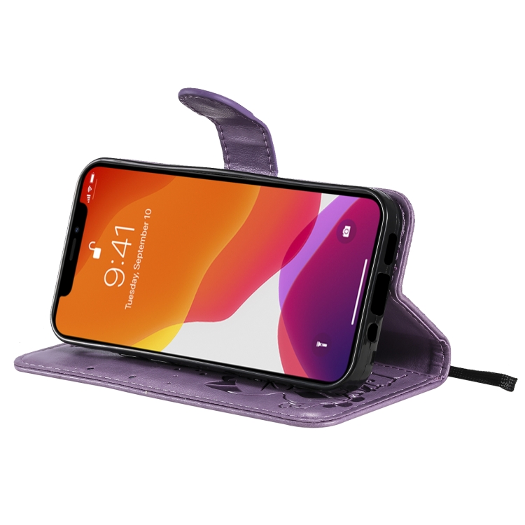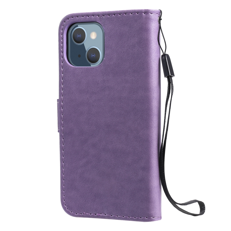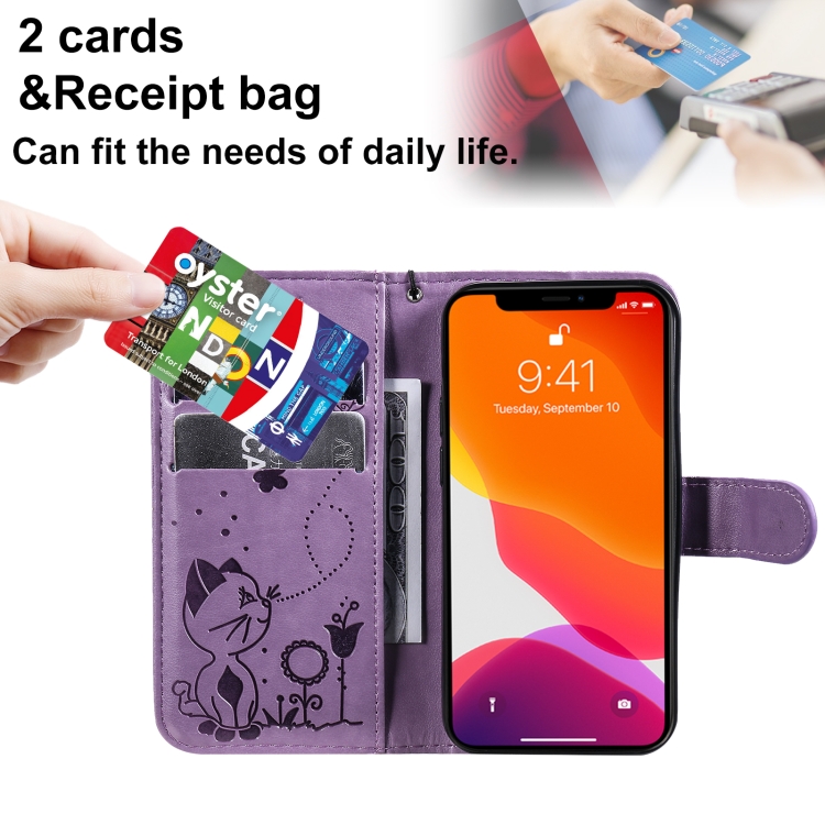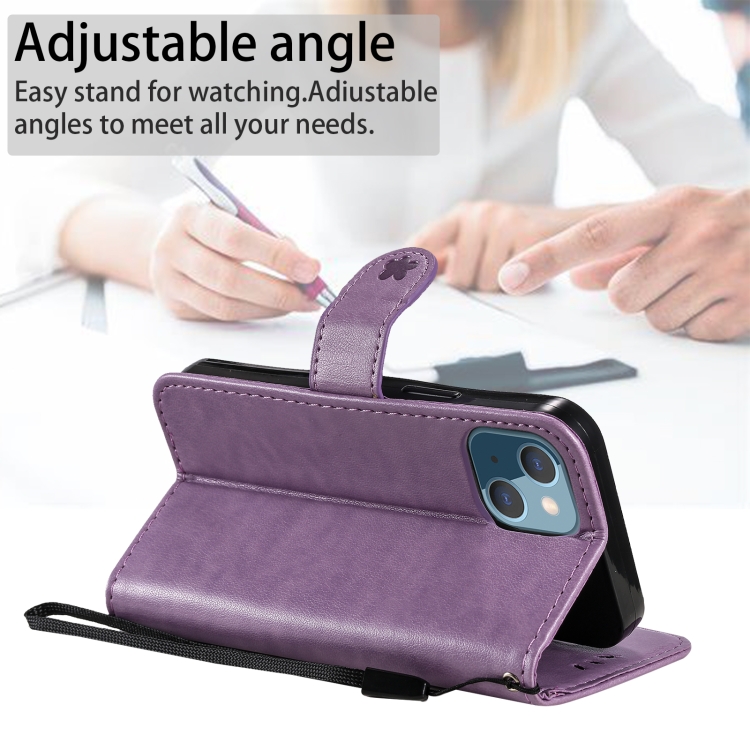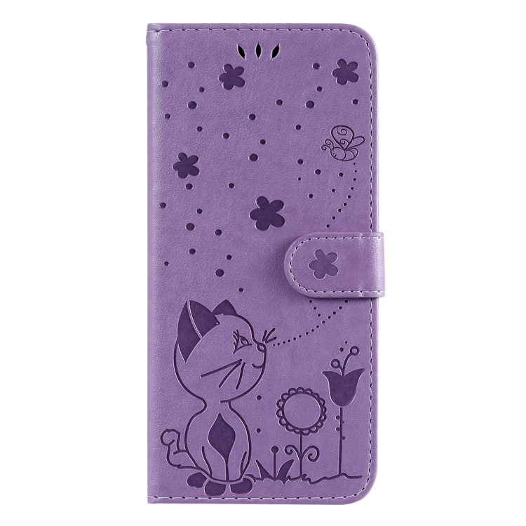 Funda para iPhone 13 Mini Cat Bee Cuero con Tapa Horizontal Soporte y Ranuras (Púrpura)