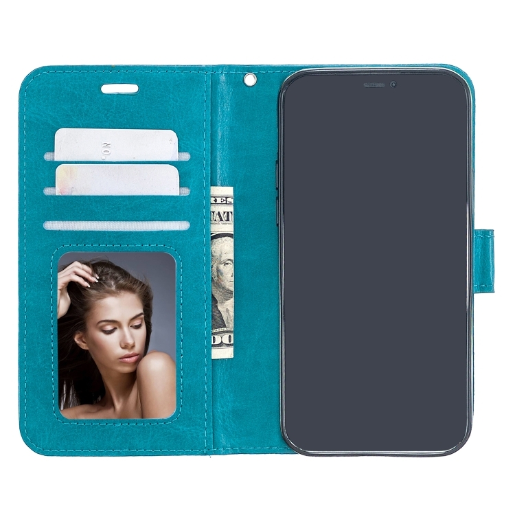 Funda de Cuero Crazy Horse para iPhone 13 Mini con Tapa Horizontal, Soporte, Ranuras para Tarjetas y Billetera (Azul)