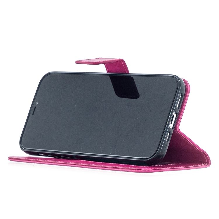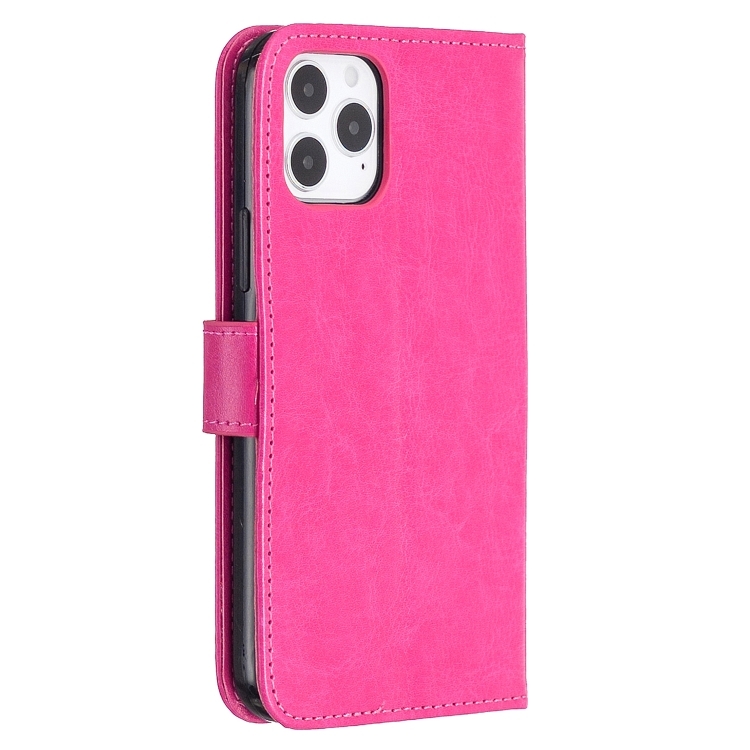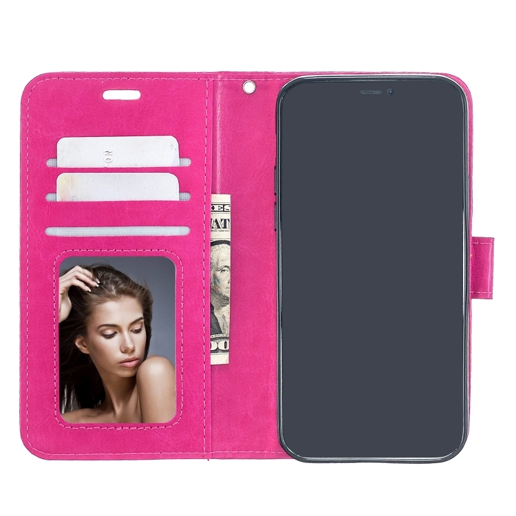Funda de Cuero Crazy Horse para iPhone 13 Mini con Tapa Horizontal, Soporte, Ranuras para Tarjetas y Billetera y Marco de Fotos (Rosa Roja)
