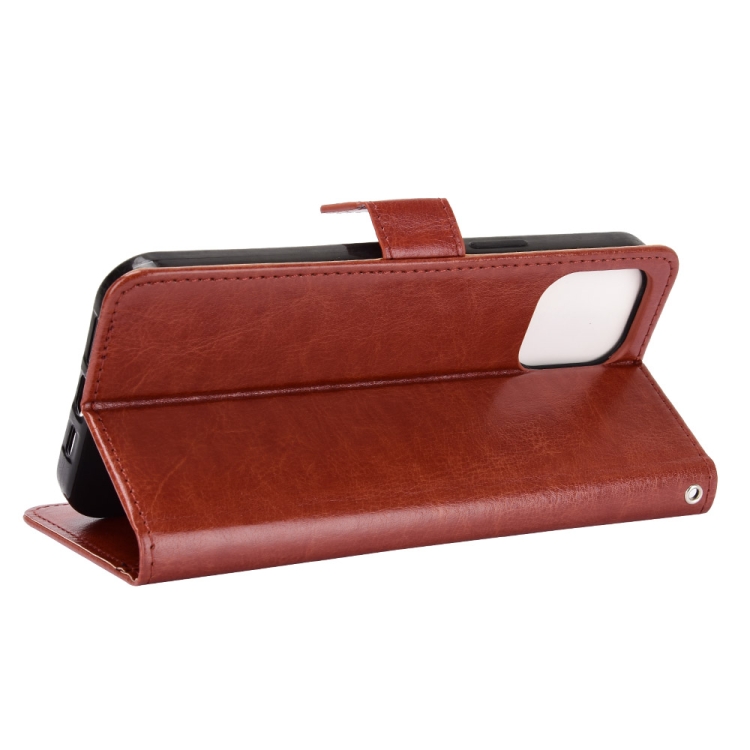 Funda para iPhone 13 Mini Crazy Horse Texture Cuero con Tapa Horizontal Soporte Ranuras Tarjetas Cordón (Marrón)
