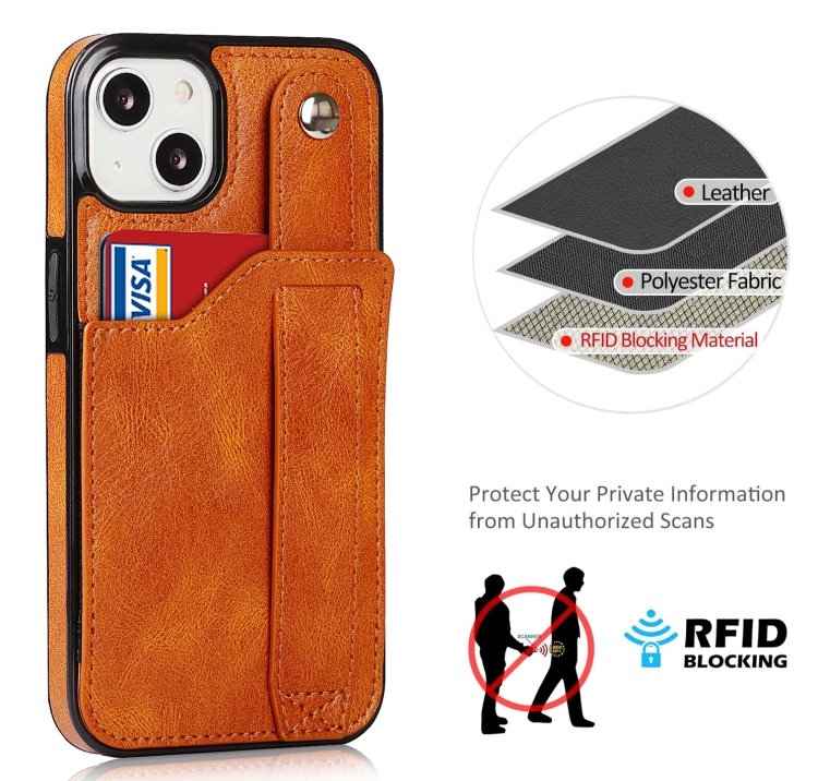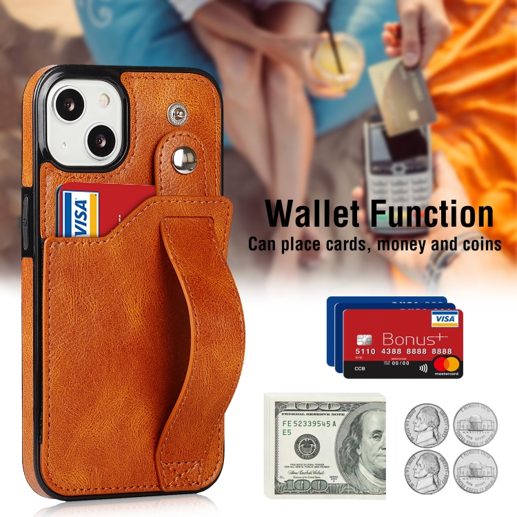 Funda para iPhone 13 Mini Crazy Horse Texture Cuero TPU + PU a Prueba de Golpes con Ranura para Tarjeta y Correa para la Muñeca (Amarillo)