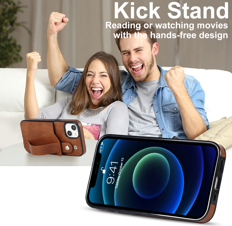 Funda para iPhone 13 Mini Crazy Horse Texture Cuero TPU + PU Prueba de Golpes Ranura Tarjeta Correa (Marrón)