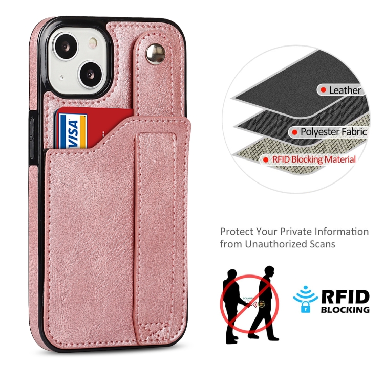 Funda para iPhone 13 Mini Crazy Horse Texture Cuero TPU y PU a Prueba de Golpes con Ranura para Tarjeta y Correa (Oro Rosa)