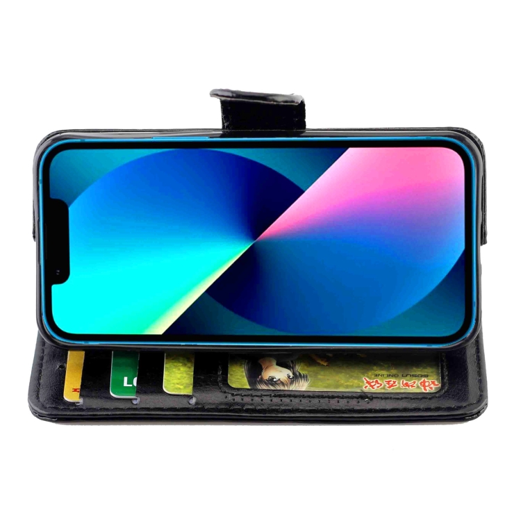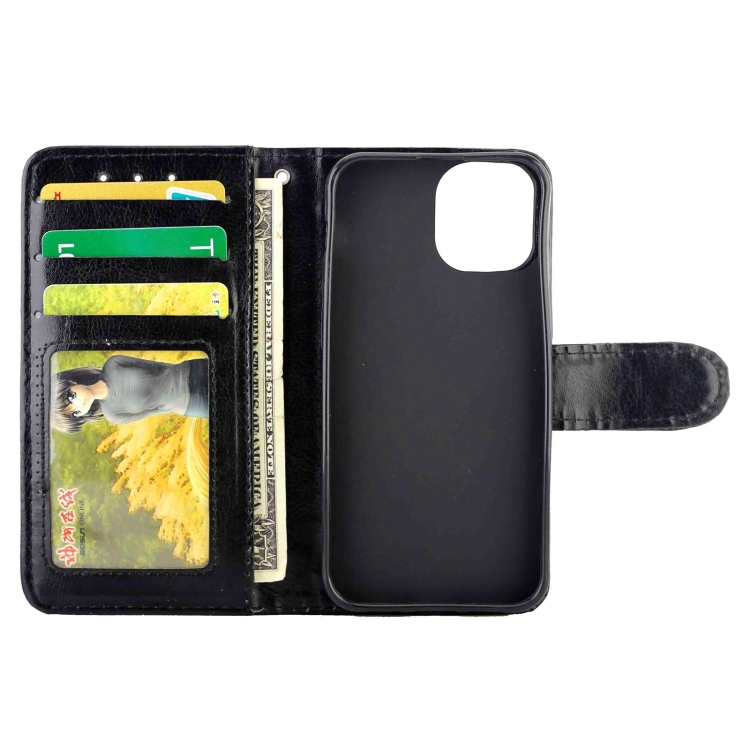 Funda Protectora iPhone 13 Mini Crazy Horse Texture con Tapa Horizontal, Soporte, Ranuras para Tarjetas y Billetera (Negro)