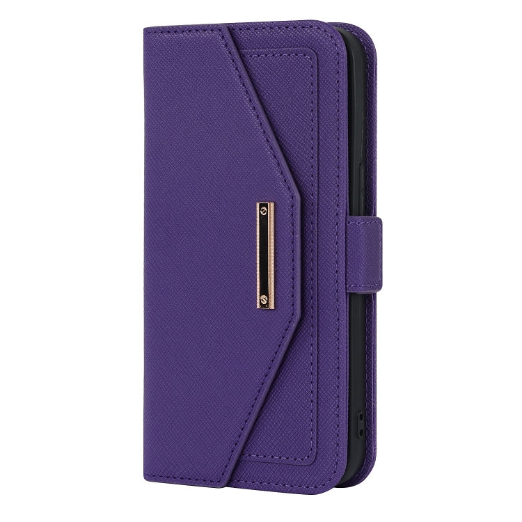 Funda para iPhone 13 Mini Cross Texture con Lanyard de Cuero (Púrpura)