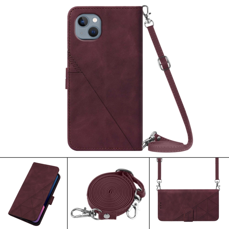 Funda para iPhone 13 Mini Crossbody 3D Cuero con Tapa en Relieve (Rojo Vino)