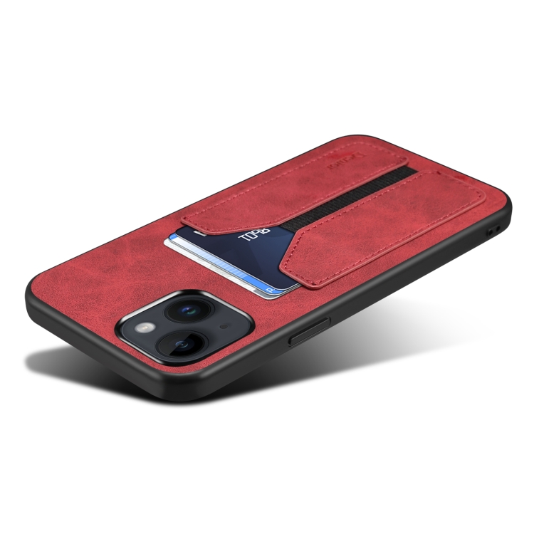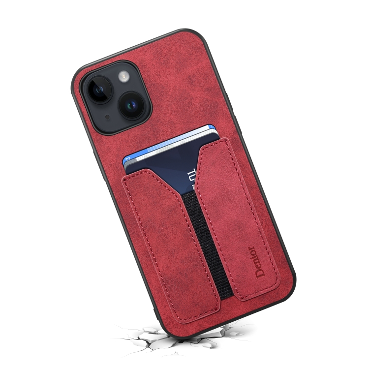 Funda para iPhone 13 Mini Denior Dv Tarjeta Elástica Pu Contraportada Caja del Teléfono (Rojo)
