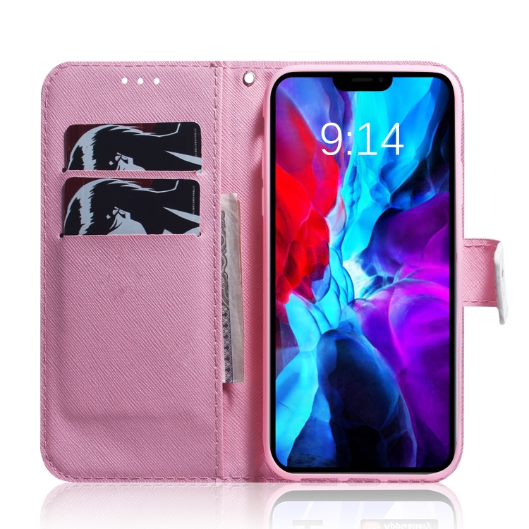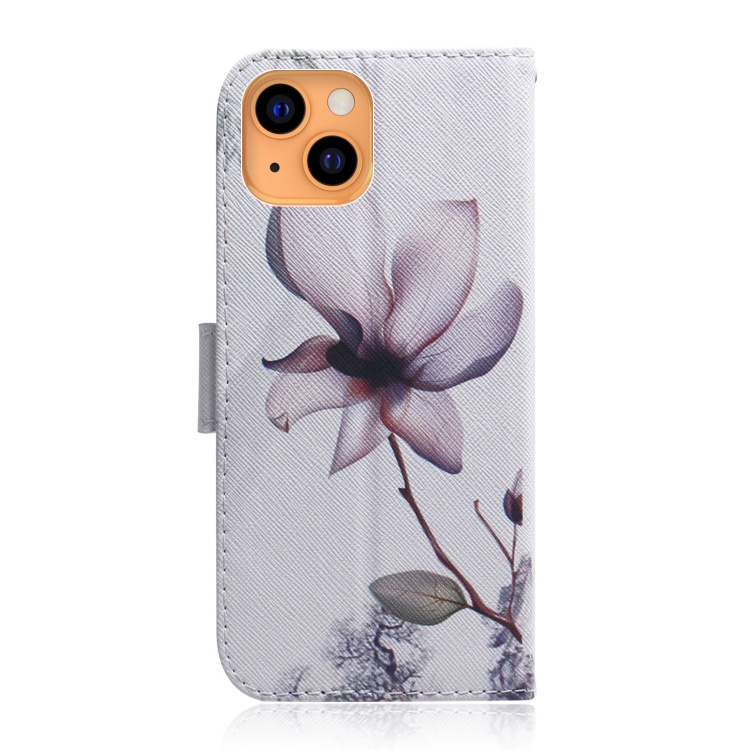 Estuche de Cuero para iPhone 13 Mini con Tapa Horizontal, Soporte, Ranuras y Dibujo Flor de Magnolia