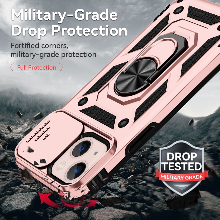 Estuche para teléfono iPhone 13 Mini con soporte deslizante Camshield (Oro Rosa)