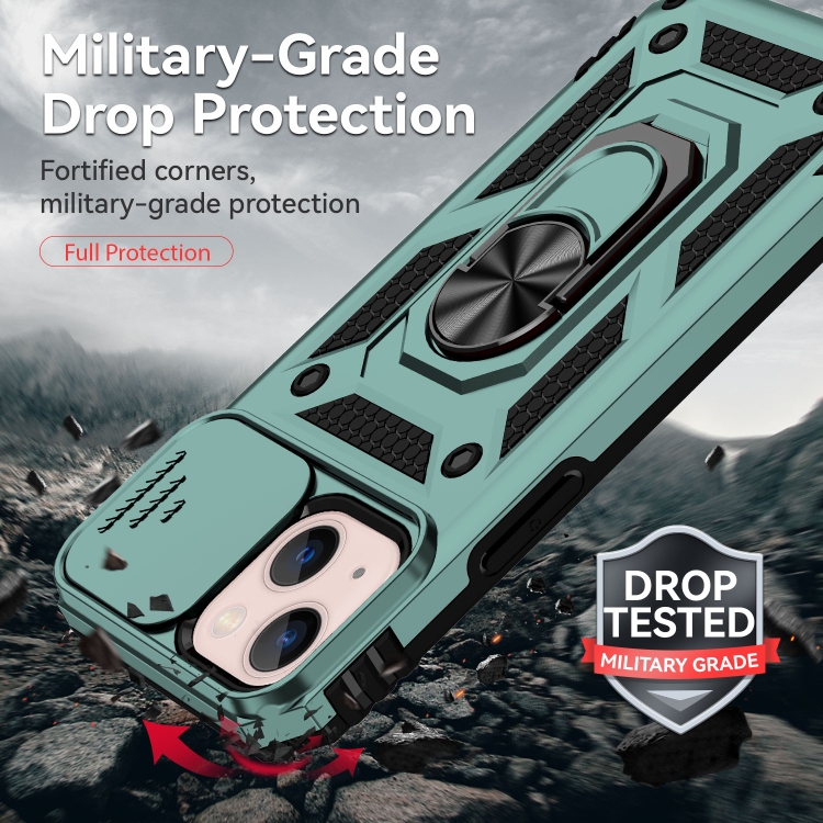 Estuche para Teléfono iPhone 13 Mini con Soporte Deslizante Camshield (Verde Oscuro)