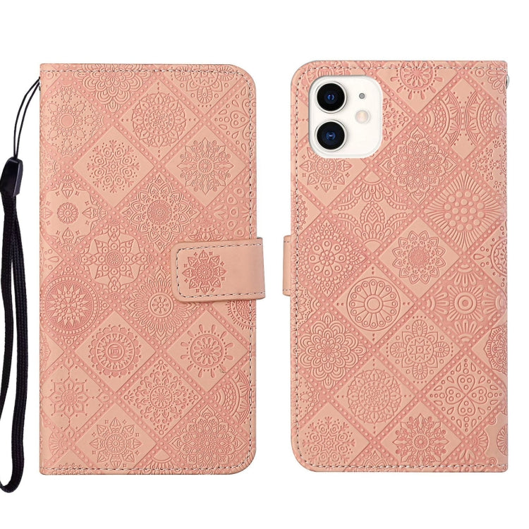 Estuche para Teléfono iPhone 13 Mini Cuero Patrón En Relieve Estilo Étnico (Rosa)