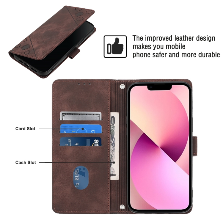 Estuche para Teléfono iPhone 13 Mini Cuero En Relieve con Tacto de Piel (Marrón)
