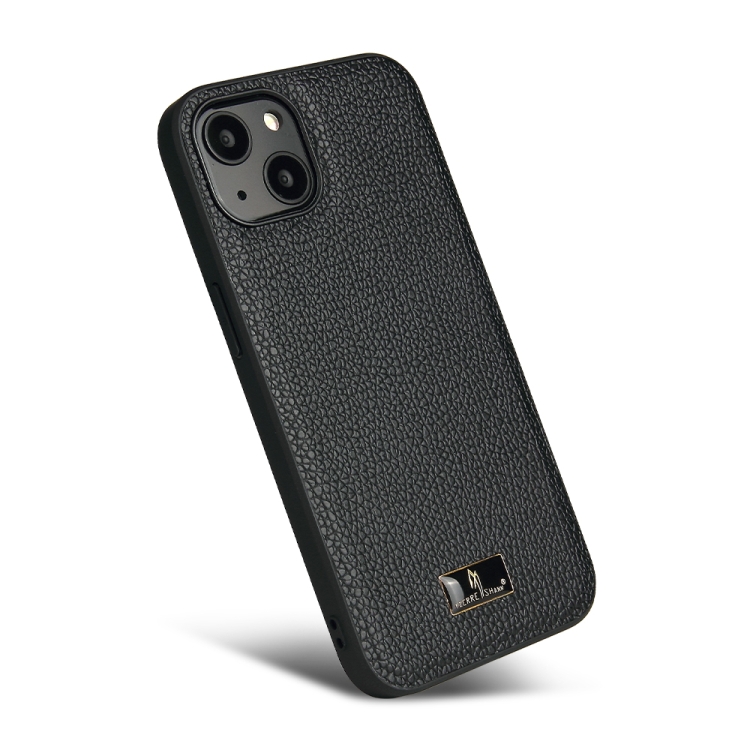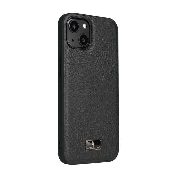 Funda para iPhone 13 Mini Fierre Shann Leather Texture Tapa Trasera (Cowhide Negro)