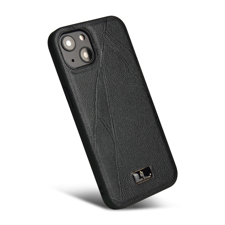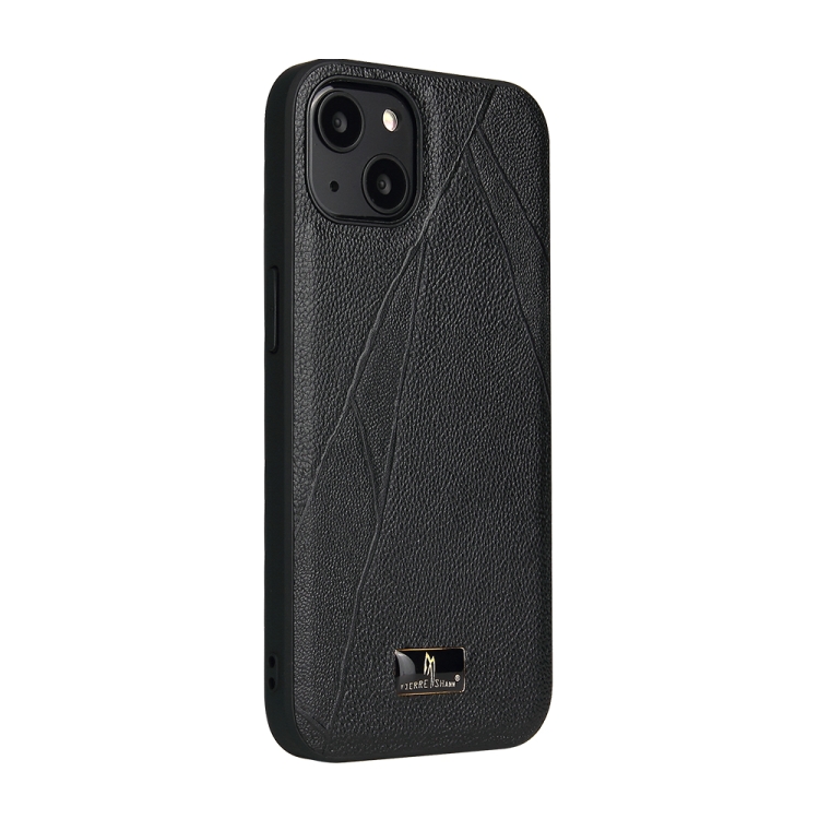 Funda para iPhone 13 Mini Fierre Shann Leather Texture Tapa Trasera (Ox Tendon Black)