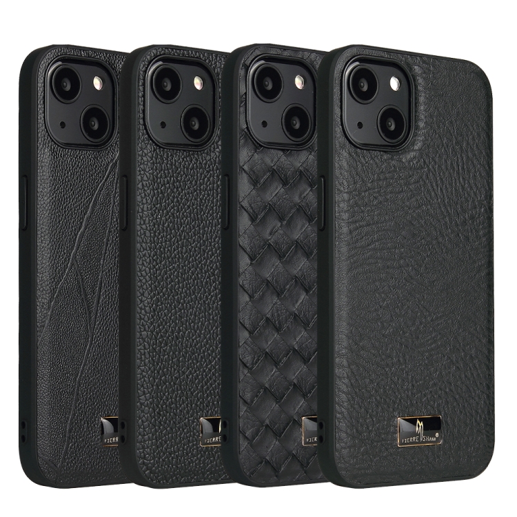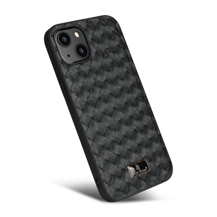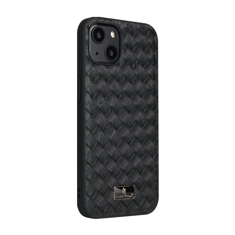 Funda para iPhone 13 Mini Fierre Shann Leather Texture Back Cover Case (Woven Black)