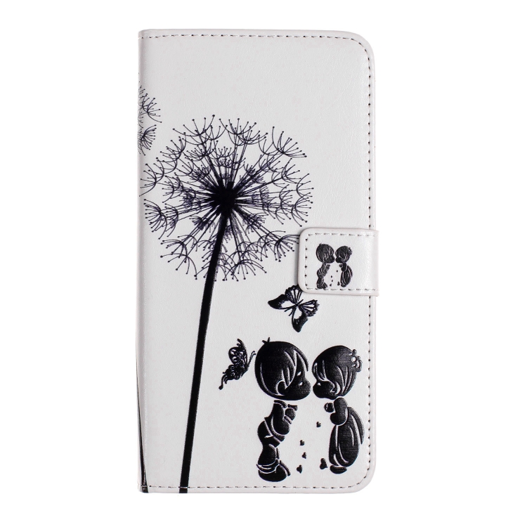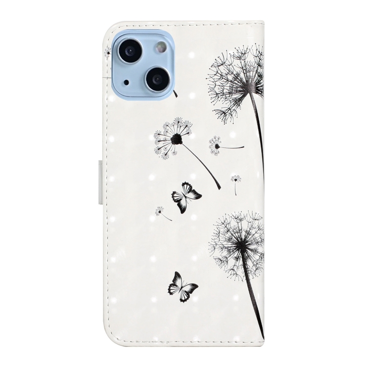 Funda para iPhone 13 Mini de Cuero con Dibujo 3D en Relieve al Óleo (Pareja de Diente de León)