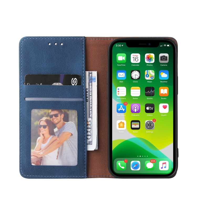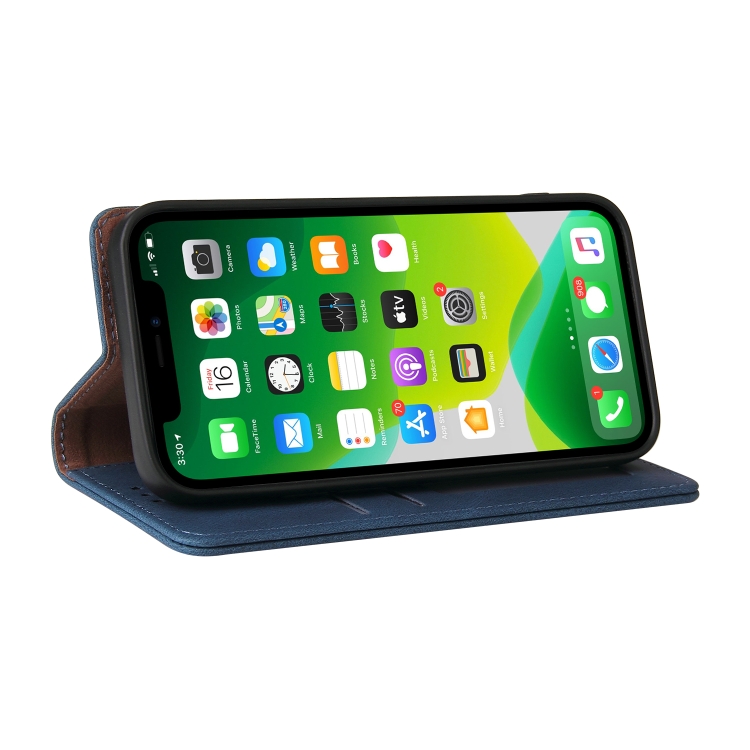 Funda de Cuero para iPhone 13 Mini con Tapa Horizontal, Cierre de Succión, Soporte, Ranura para Tarjeta y Billetera (Azul)