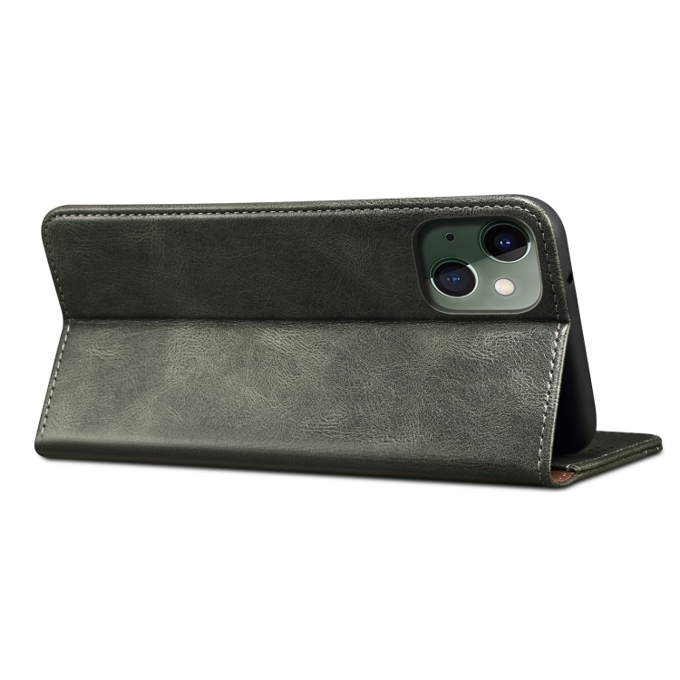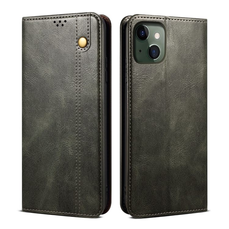 Funda para iPhone 13 Mini Cuero con Tapa Horizontal Textura Caballo Loco Ranuras Tarjetas Billetera (Verde Oscuro)