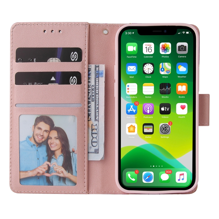 Funda para iPhone 13 Mini Cuero de PU con Tapa Horizontal Soporte Ranuras Tarjetas Billetera Marco Fotos (Oro Rosa)