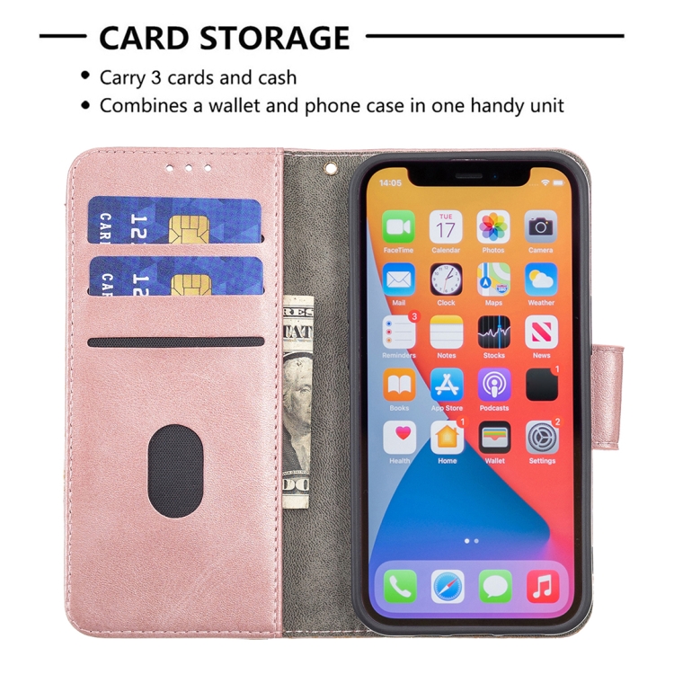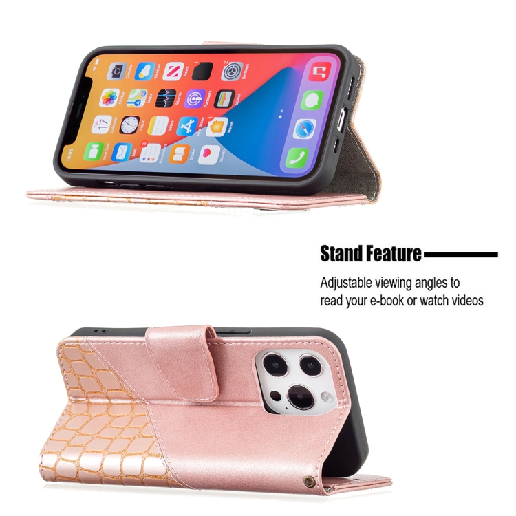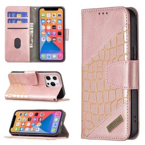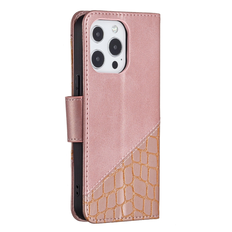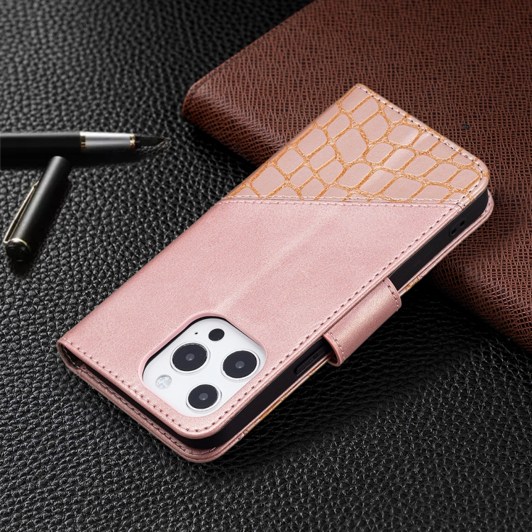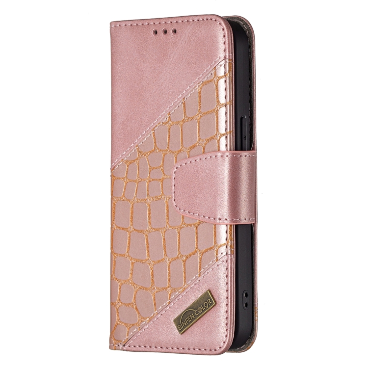 Funda para iPhone 13 Mini Cuero PU Tapa Horizontal Textura Cocodrilo Billetera Soporte Ranuras Tarjetas (Oro Rosa)