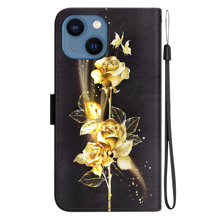 Funda de Cuero para iPhone 13 Mini con Dibujo Coloreado y Textura de Cristal (Mariposa Dorada Rosa)